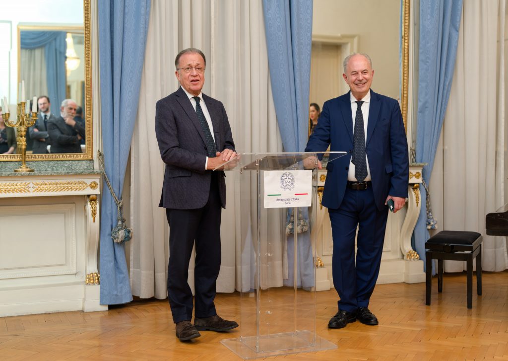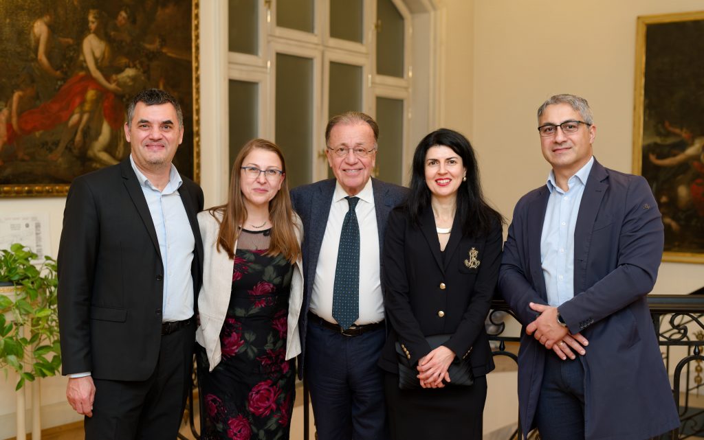 На снимката от ляво надясно: проф. д-р Свилен Маслянков, доц. д-р Ася Консулова, Alberto Costa MD – CEO of the European School of Oncology (ESO), д-р Искра Даскалова, д-р Вълкан Иванов Ambasciata d’Italia a Sofia / Посолство на Италия в София